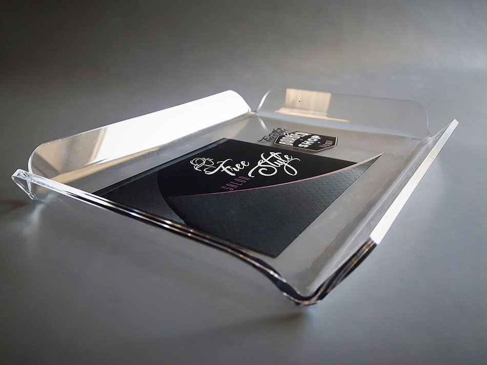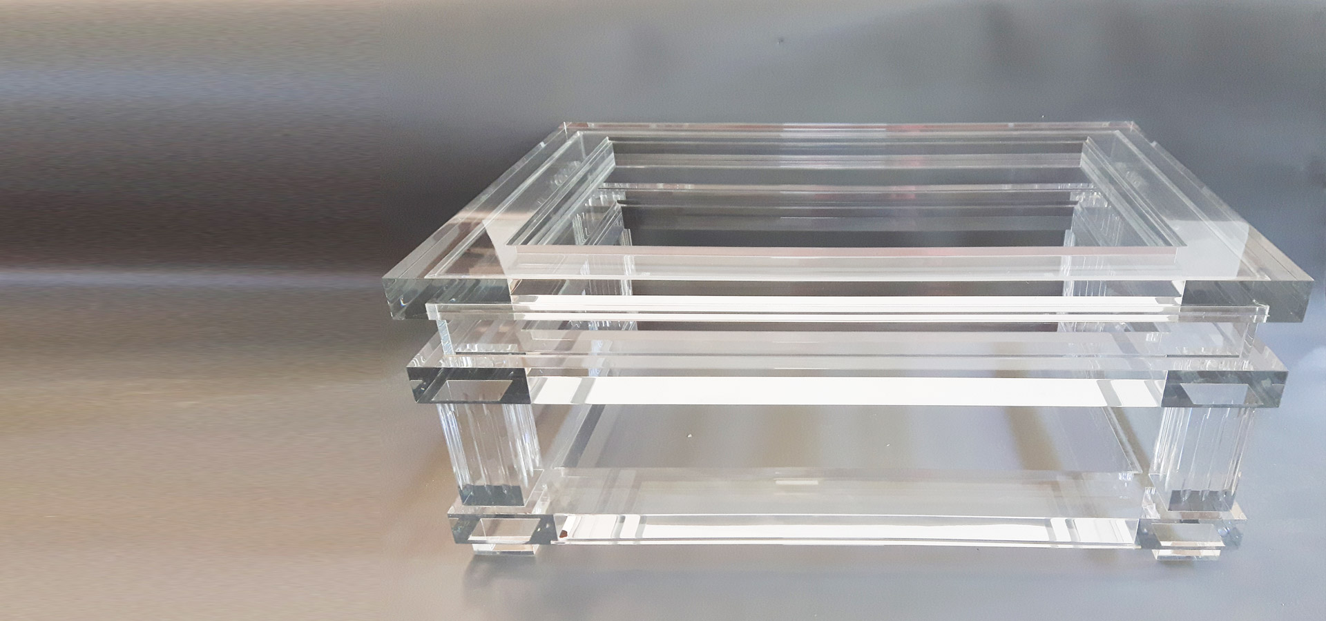 Le polyméthacrylate de méthyle, dans sa forme abrégée PMMA est une matière plastique formée de polymères du méthacrylate de méthyle,un éther méthylique de l' acide méthacrylique, également connu sous le nom commercial de plexiglass.Il s'agit d'un matériau très transparent, ductile et polyvalent, qui se prête facilement aux différents types d'usinage. Il est principalement utilisé dans le secteur des objets et de l'aménagement d'intérieurs, car en extérieur il peut finir par durcir et se casser.